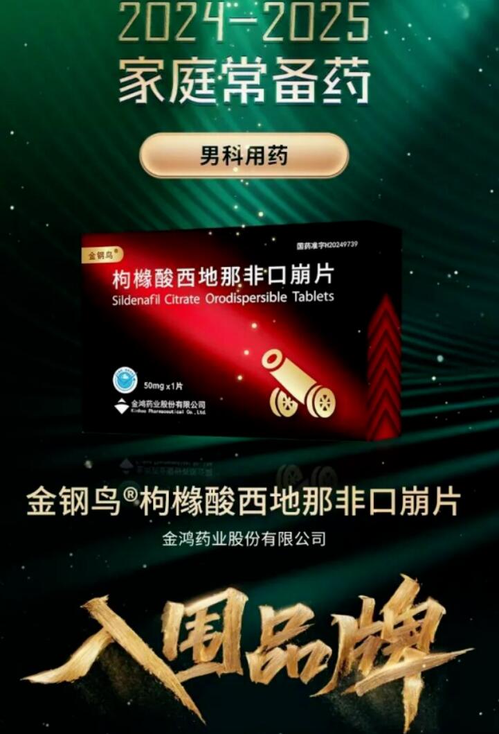 金鸿药业—金钢鸟R枸橼酸西地那非口崩片荣登2024-2025年度