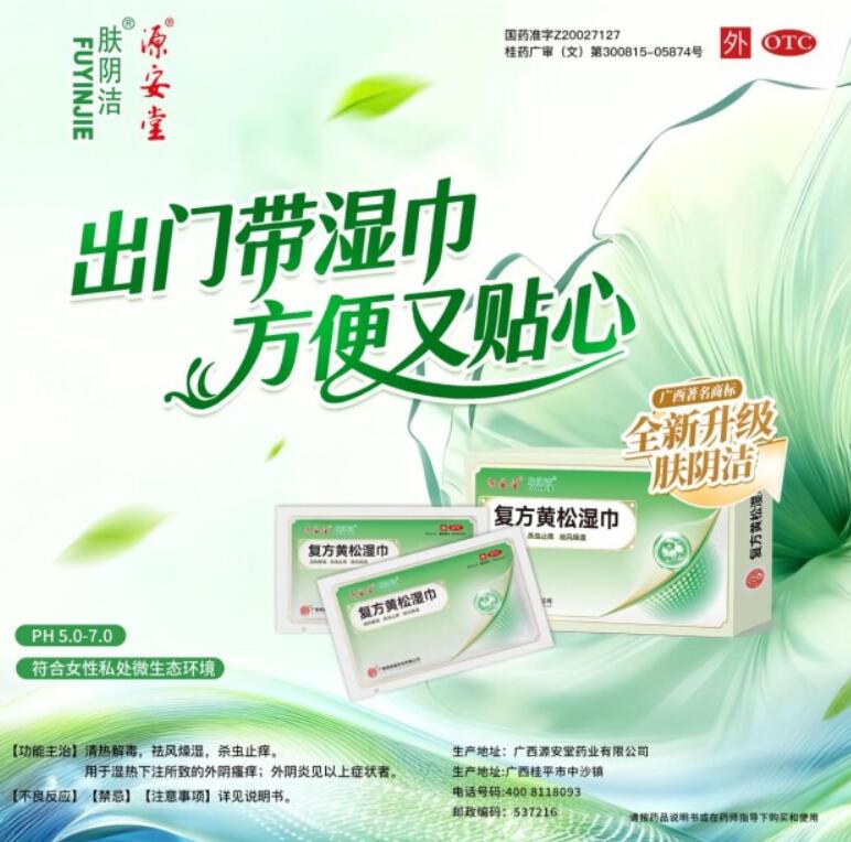 在众多参评的优质产品中,广西源安堂药业有限公司的肤阴洁®复方黄松湿巾脱颖而出。作为国药准字妇科药用湿巾,肤阴洁以其卓越品质、良好口碑获得市场的高度认可,荣登家庭常备药“妇科药”榜单,成为私密护理的优选。